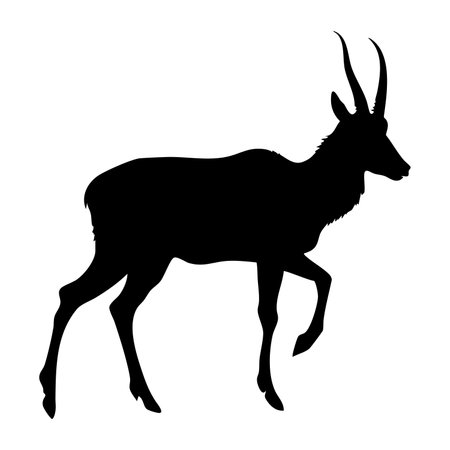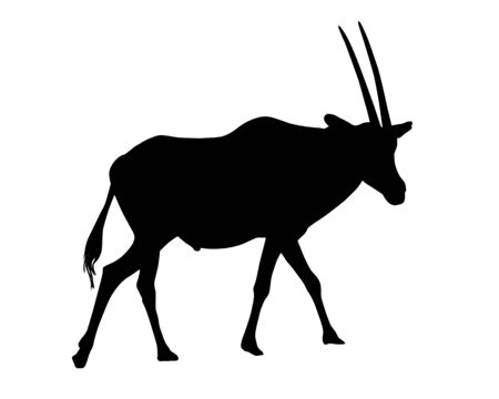 Realistic illustration of silhouettes of gazelle or antelope. Horned oryx standing - vector