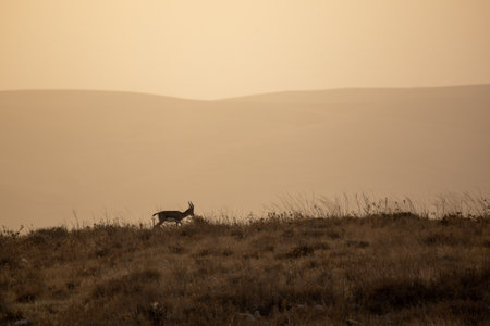 full gazelle at mid photographed with bright light in background and with short shutter speed with clear shadow