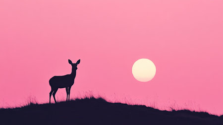 A lone deer standing on a hill, silhouetted against a pink sunset, leaving room for copy.