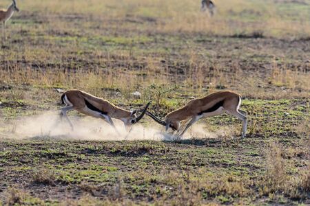 Two fighting Thomson's Gazelles (Gazella Thomsonii) in the Serengeti, Serengeti National Park, Safari, East Africa, August 2017, Northern Tanzania
