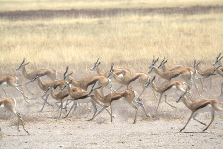 Springbok running in the savannah