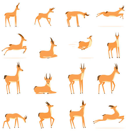 Gazelle icons set. Cartoon set of gazelle vector icons for web design