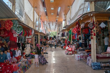 GAZIANTEP, TURKEY - OCTOBER 24, 2021: ALMACI BAZAAR in Gaziantep (Turkish: Almaci Pazari). historical shopping centre. Local and organic products.