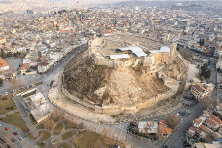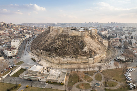 Gaziantep Kalesi Castle Breathtaking Picturesque Cityscape View on a Blue Sky Day in Summer