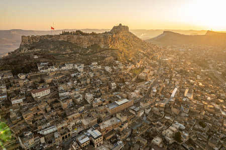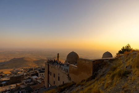 Artuklu Mardin, Turkey 7 May 2022 Mardin landscape at sunset with minaret of Ulu Cami, view from Zinciriye Madrasah