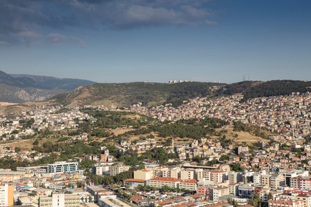 Panorama view from Acropolis of Pergamon or Pergamum to the new city Bergama.