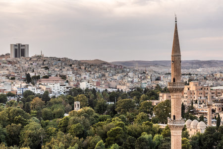 Aerial view of Sanliurfa with a minaret of Mevlid Halil mosque, Turkey