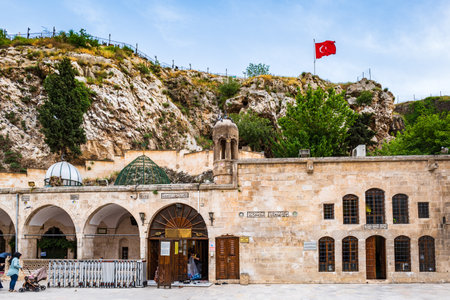 Urfa, Turkey - May 2022: Cave of Abraham within the compound of the Mevlid-I Halil Mosque. Abraham's cave in Sanliurfa