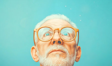 A man with glasses looking up at the sky while wearing a plaid shirt, AI