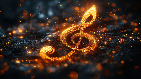 A mesmerizing golden musical note radiates energy against a dark background, symbolizing creativity and inspiration in the world of music and art.
