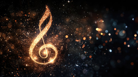 A beautiful abstract design featuring a golden music note surrounded by shimmering sparkles, evoking themes of music, elegance, and creativity.