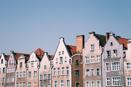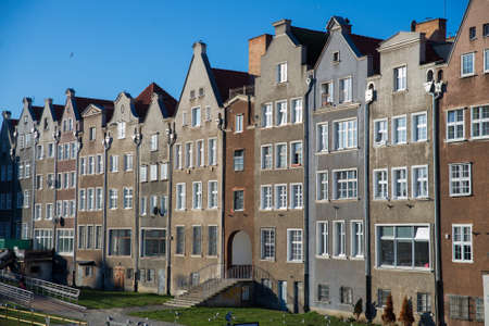 Ancient architecture of old town in Gdansk Poland. Beautiful and colorful old houses historical part of downtown. Travel destination