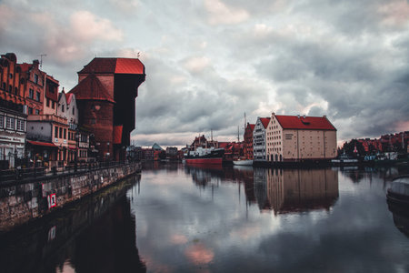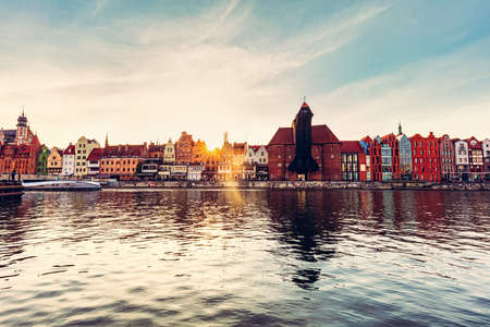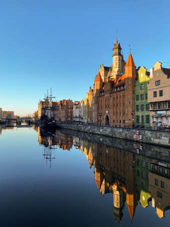 Gdansk with beautiful old town over Motlawa river in the morning, Poland. High quality photo