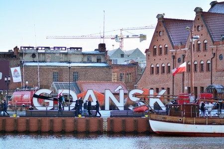 Gdansk, Pomeranian/ Poland - August 21, 2019: Old town, harbour, Motlawa River