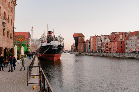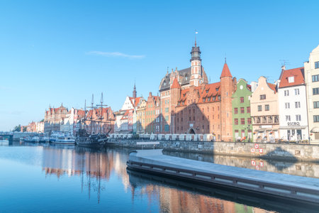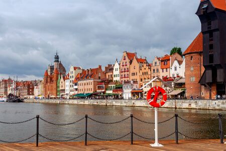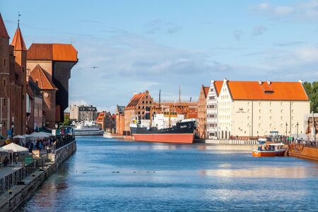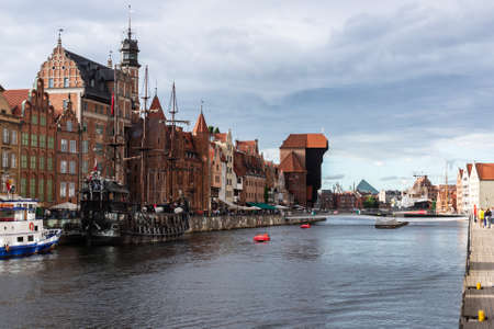 Gdansk, Poland - September 07, 2019: Gdansk old town, Motlawa river.