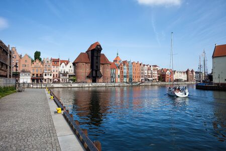 Old town of Gdansk Danzig in Poland. Zuraw crane and Motlawa river