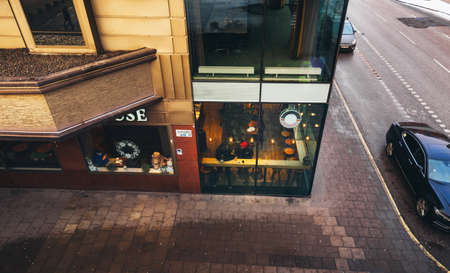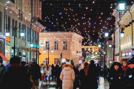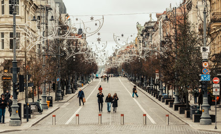 Vilnius, Lithuania - November 22 2025: People walking in Gedimino avenue in the center of Vilnius, Lithuania, closed to traffic
