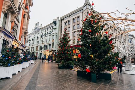 MOSCOW, RUSSIA - DECEMBER 23, 2016: New Year in Moscow, Arbat is decorated with Christmas trees