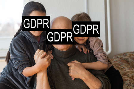 a large family of people behind the inscription GDPR. General data protection regulation. Cyber security and privacy