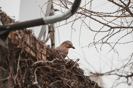 The Eurasian jay on the tree, Garrulus glandarius, is a species of passerine bird in the crow family Corvidae.