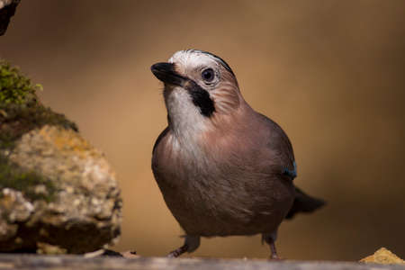 Portrait of standing Eurasian Jay - Garrulus glandarius. Bird in the crow family