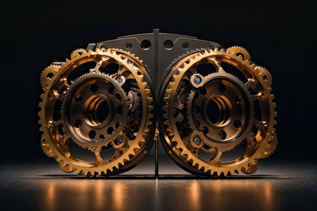 Metallic machinery interlocked in teamwork, turning with precision and strength generated by artificial intelligence