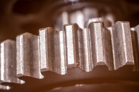 Gear closeup, macro photo of gear teeth.