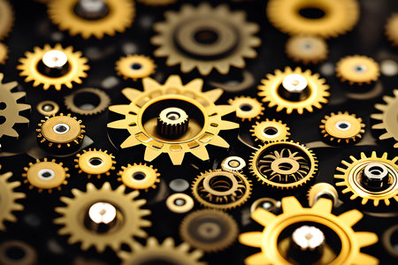 Seamlessly interlocking gears and cogs, highlighting the intricacy and precision of mechanical design