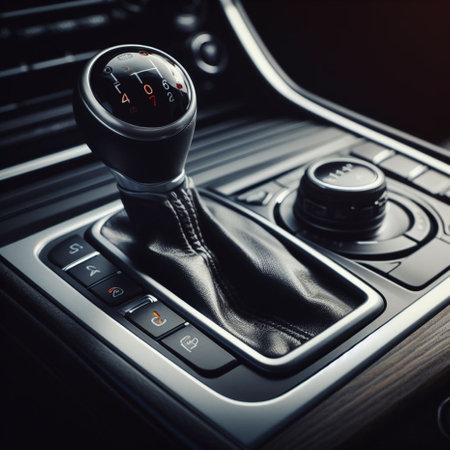 Closeup of car automatic transmission gear stick. Detail of vehicle interior