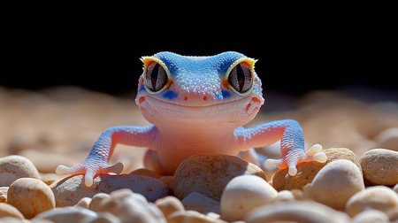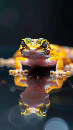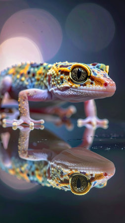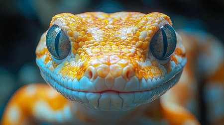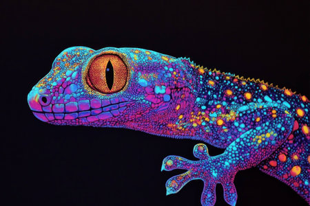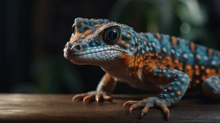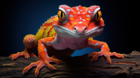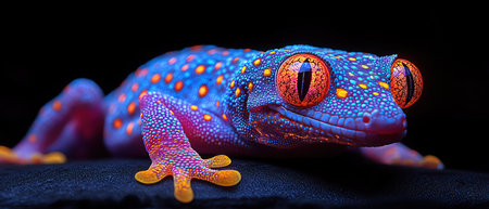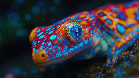 Vibrant close up of a colorful gecko showcasing intricate patterns and textures against a dark background, illustrating the beauty of wildlife and nature