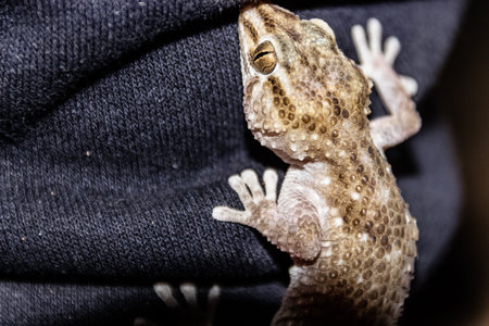 Isolated close up of a domestic beautiful gecko lizard- Israel