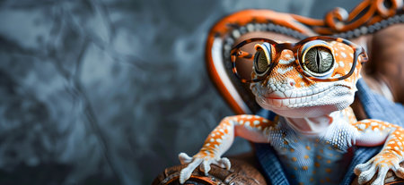 Stylish and Sophisticated Tokay Gecko Wearing Fashionable Glasses and Suit Sitting Regally on a Throne with Ample Copy Space for Text or Design Vibrant Colorful and Utterly Unique Wildlife Portrait