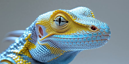 AI Generated. Close Up of a Lizard with Yellow and Blue Scales