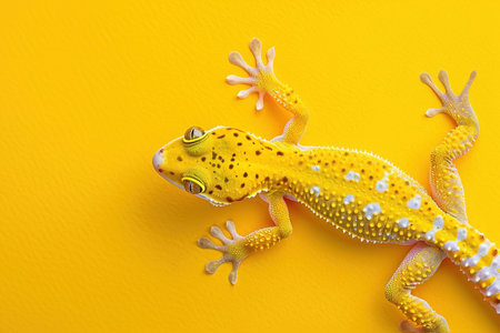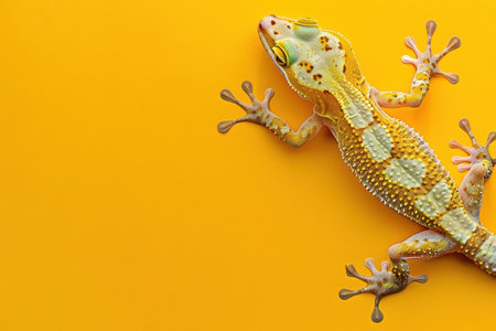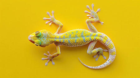 A lizard on a yellow background. Top view of a lizard on a yellow background.