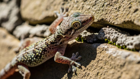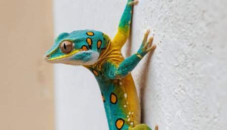 Vibrant Colorful Gecko on Textured Surface. Generative AI.