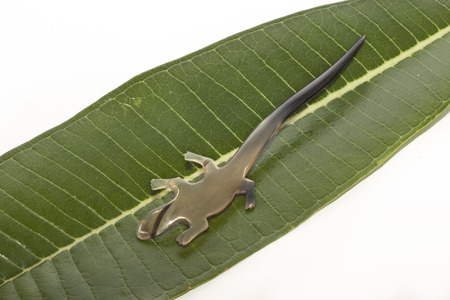 green jungle leaf with gecko shadow showing rainforest or nature concept