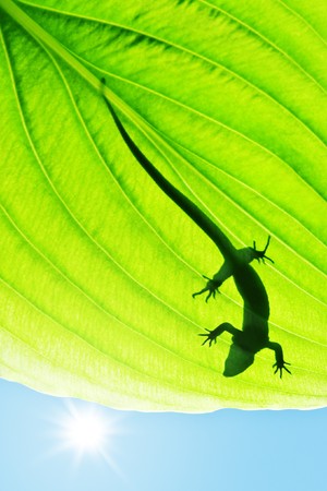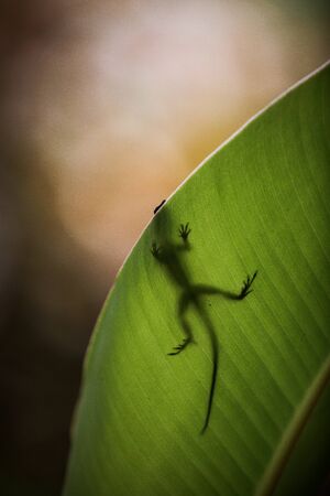 gecko shadow on green leaf texture showing nature concept with copyspace