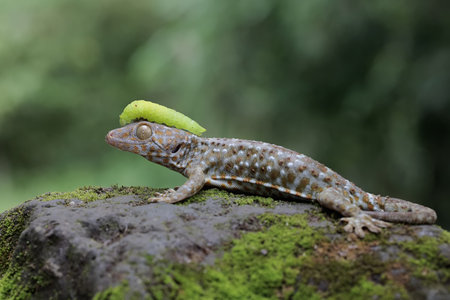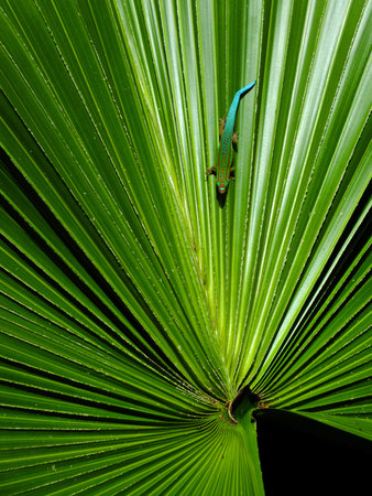 Young tokay gecko on a palm tree leaf, Ang Thong National Marine Park, Thailand