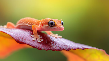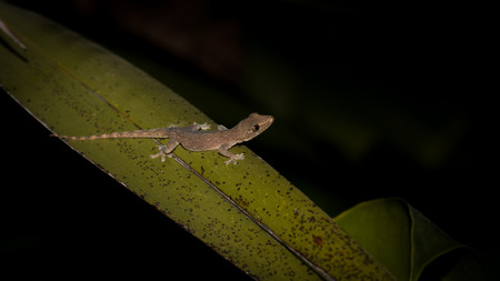 Gecko on leaf, rainforest bokeh. Nature wildlife