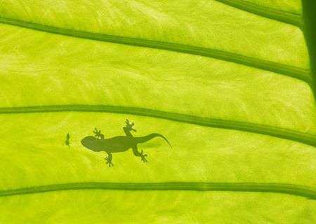 gecko shadow on green leaf texture showing nature concept with copyspace
