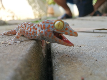 close up healthy thailand tokay gecko walking on ground