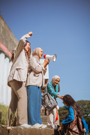 young students activist holding hands together in a rally on indonesian independence day