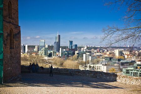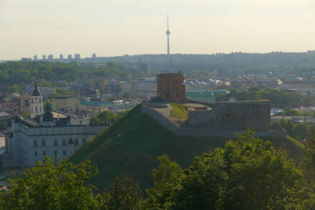 View of Vilnius from the Hill of the Three Crosses, Lithuania.On the right - the ruins of the upper castle with the Gediminas Tower, behind them - TV tower. On the left - the Palace of the Rulers