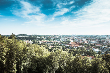 Panorama of the city of Vilnius with many monuments, churches, castles and greenery. City listed as a UNESCO World Heritage site.