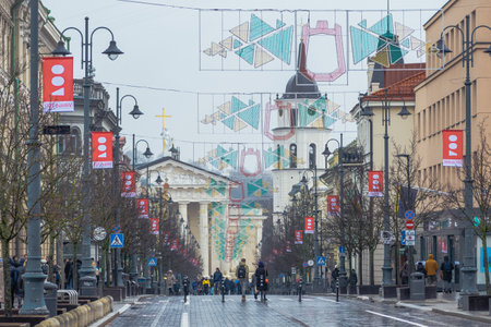 Vilnius, Lithuania - February 25 2023: Gedimino avenue in the center of Vilnius, Lithuania, closed to traffic on the occasion of the celebrations of the 700th anniversary of the foundation of the city