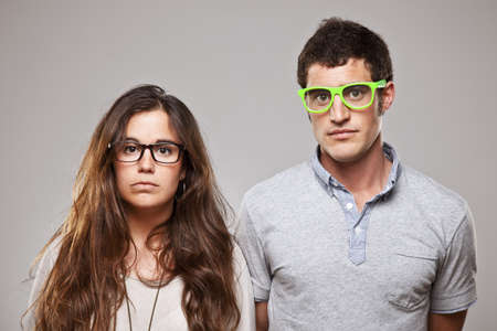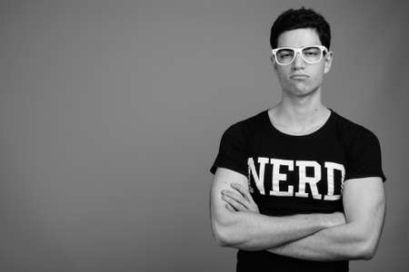 Portrait of young handsome nerd man with eyeglasses