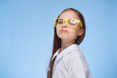 Little girl in yellow glasses, portrait.