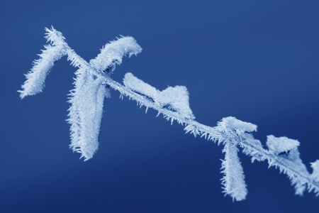Rime on plants. Close up of plant with beautiful hoarfrost, soothing tones and colors.