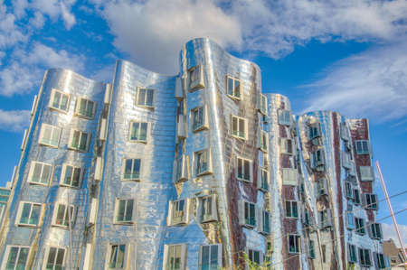 DUESSELDORF, GERMANY - AUGUST 3, 2009: The new Medienafen is a redevelopment area in the former docklands and harbour with buildings designed by Steven Holl, David Chipperfield and Frank O Gehry