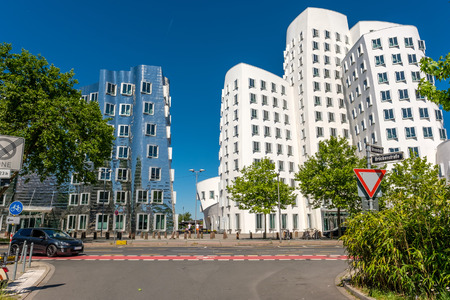Dusseldorf, Germany - August 11, 2019: View at Gehry Neuer Zollhof buildings